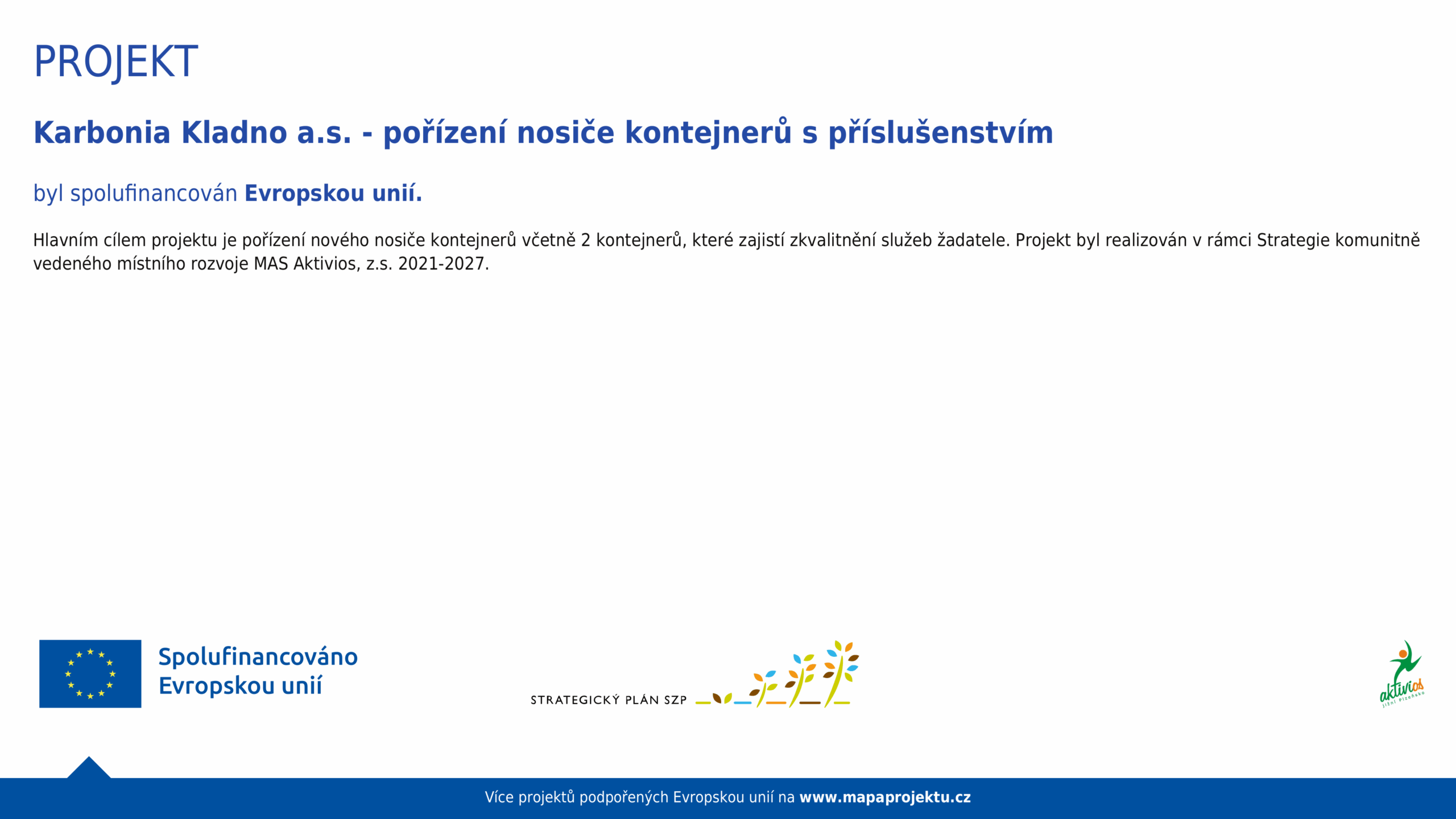 Název projektu: KARBONIA KLADNO, a.s. – pořízení nosiče kontejnerů s příslušenstvím